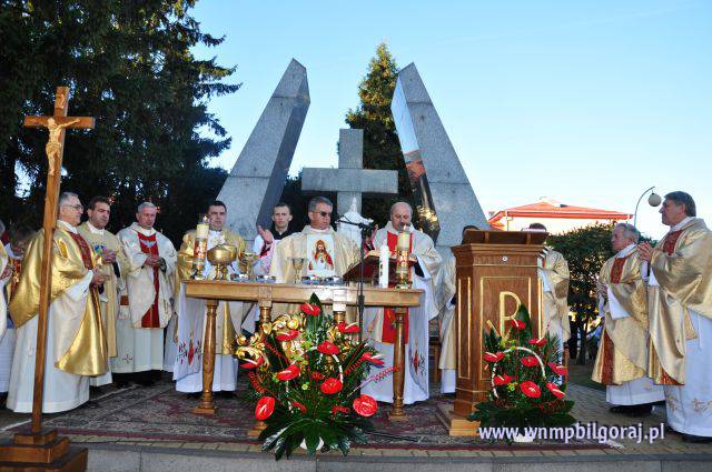 2 X 2011 r. w 10 rocznicę Intronizacji NSJ Króla Wszechświata, przed Urzędem Miasta w Biłgoraju została odprawiona uroczysta Msza św. z udziałem duchowieństwa, przedstawicieli poszczególnych stanów społeczeństwa i wiernych. Mszy św. koncelebrowanej przez księży proboszczów z Biłgoraja i okolic przewodniczył ks. prał. dr Adam Firosz - Kanclerz Kurii. Słowa powitania skierował do wszystkich zebranych ks. prał. dr Józef Flis. Homilię wygłosił o. Jan Mikruta, redemptotysta, który przeprowadził jednodniowe rekolekcje w każdej biłgorajskiej parafii przygotowujące wiernych do uroczystości rocznicowych intronizacji NSJ Króla Wszechświata. Uroczystość uświetnił swym śpiewem chór „Cordis” z parafii WNMP pod kierunkiem p. Józefa Wajraka.